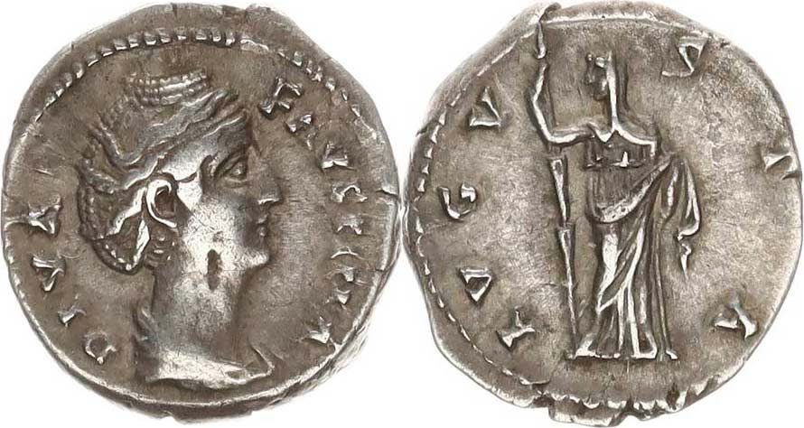 Denár, stojící Ceres drží dlouhou pochdeň DIVA FAVSTINA / AVGVSTA RIC 362; BMC 421 3,00 g