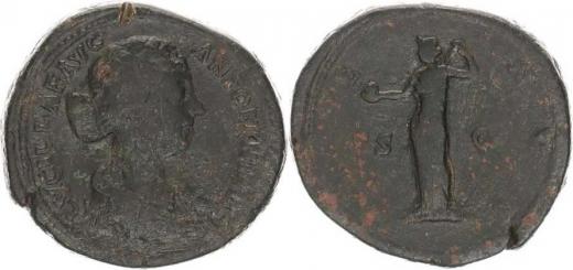 Sestercius, stoj.Venuše drží jablko a přetahujw si přes rameno ro ucho, VE NVS v poli S - C (ražený za Marka Aurelia, Řím, asi 164-169 n. l.) RIC 1767 var.; C 77; Bertolami aukce 279/2024 pol č. 293 "RR" 34 mm 25,72 g