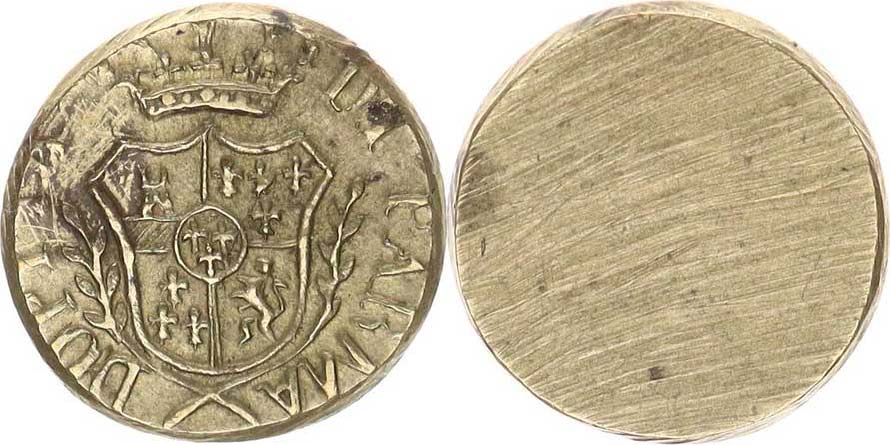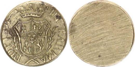 Mincovní závaží - Itálie - Parma, DOPPIA DI PARMA (1/2 Doppia) korunovaný erb s opisem (var. erbu) mosaz 18 mm 3,55 g