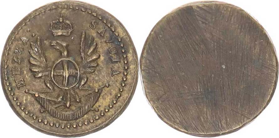 Mincovní závaží - Itálie - Savojsko, MEZZA SAVOIA (1/2 Doppia) korunovaný znak v perlovci mosaz 20,5 mm 4,56 g