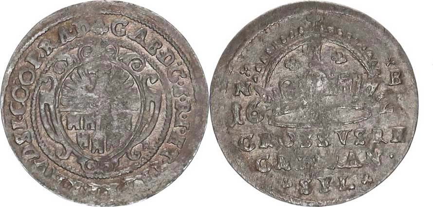 Groschen 1625 NB, Nagybánya Husz. 444; RN 310A "R" +starý podložní štítek