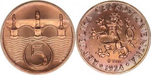 5 hal. 1924 - pamětní ražba mincovny Kremnice v r. 2000