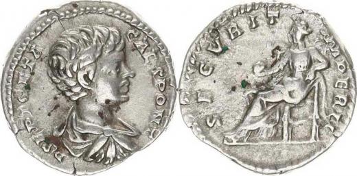Denár, sedící Securitas zleva drží globus SECVRIT IMPERII Sear 1920; RIC 20a; C: 183 4,16 g