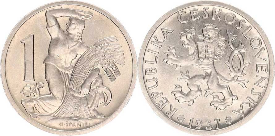 1 Kč 1937 "luxusní stav !!"