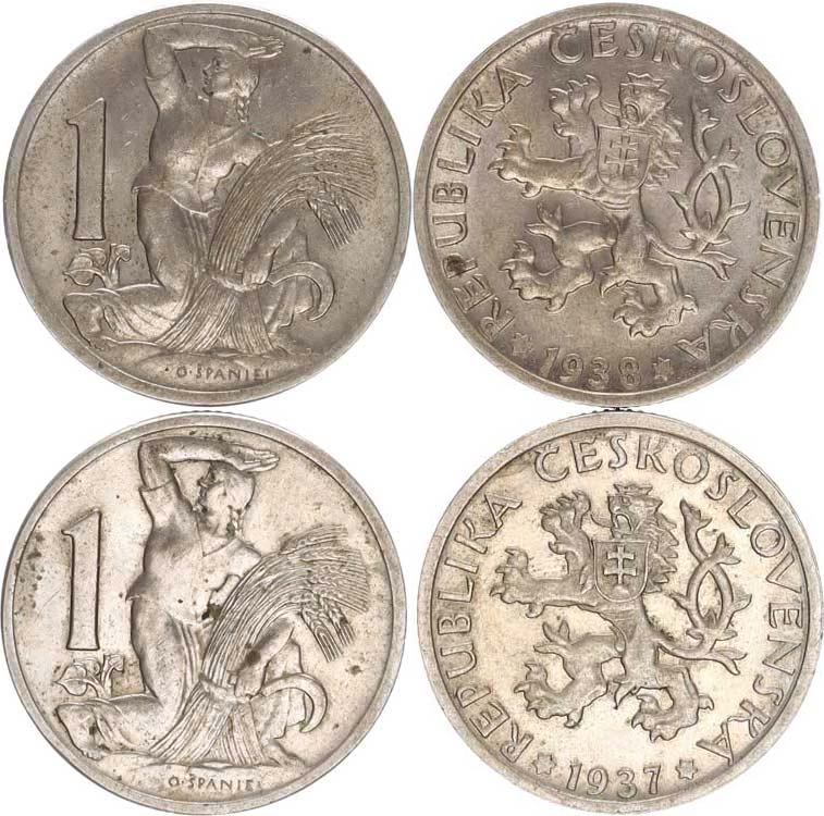 1 Kč 1937, 1938 2 ks