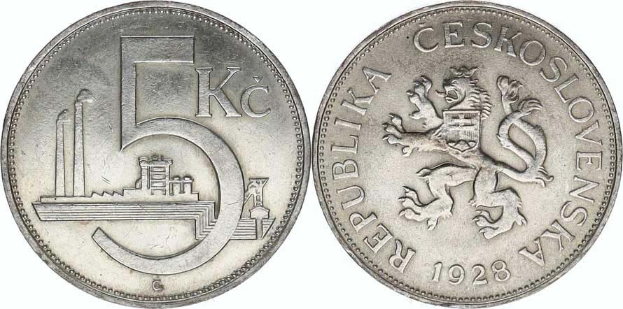 5 Kč 1928 var. B - velká vlnovka na hraně