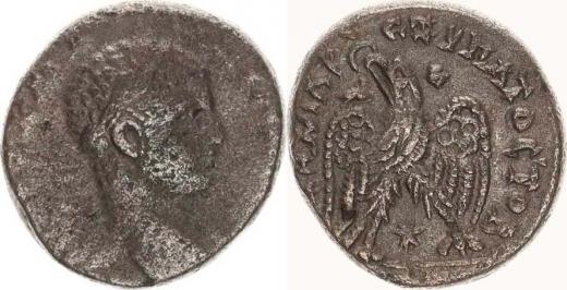 Syria, Seleucis and Pieria, Antiochia ad Orontem - AR tetradrachm a, A: Hlava císaře zprava / Stojící orel s rozepjatými křídly, me zi pařáty šesticípá hvězda 24 mm 11,657 g jako Sear (2006) 3096; jako BMC 20. 202; jako Bellinger 28,42