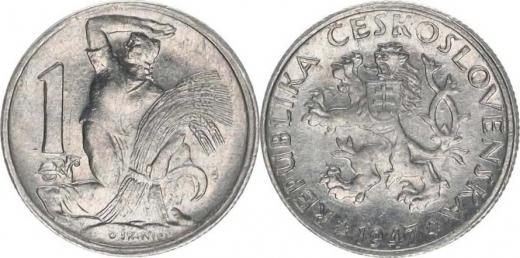 1 Kčs 1947 - Al "FALZUM" ražené 1,199 g