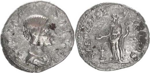 Denár, stoj.Felicitas zleva, drží caduceus a obětuje u oltáře SAECVLI FELICITAS Sear 2084; RIC 271; C:45 3,176 g