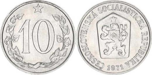 10 hal. 1971 - " chyboražba" -nahoře zvýšený dvojí okraj