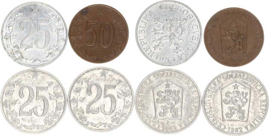 25 hal. 1953, 1962, 1963; +50 hal. 1969 var. tečky u letopočtu 4 ks