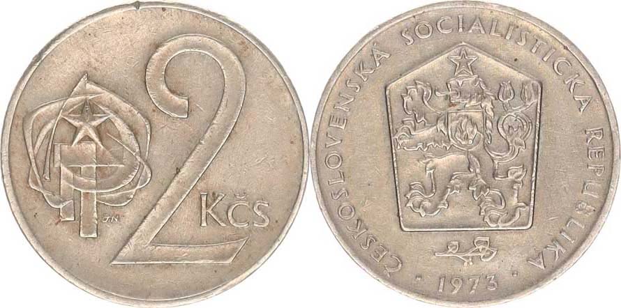 2 Kčs 1973 - var.: vlnovka na hraně "R"