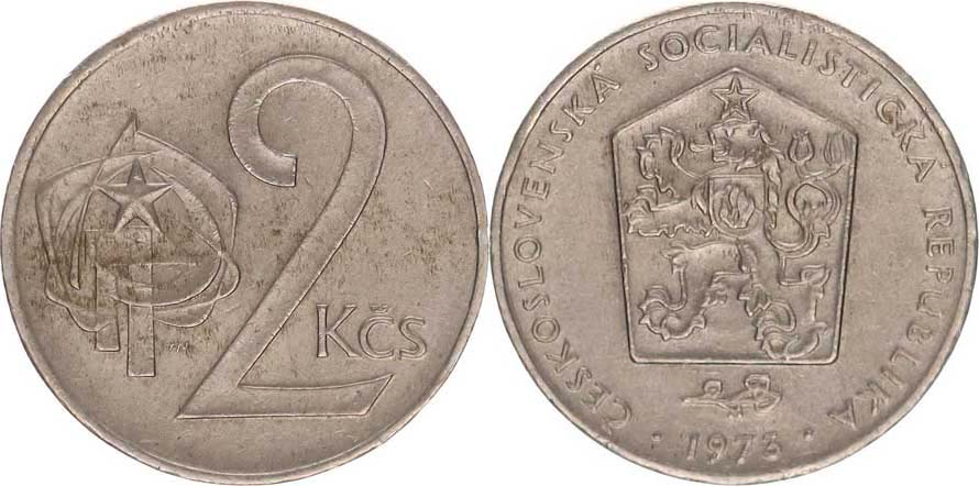 2 Kčs 1973 - var.: vlnovka na hraně "R"