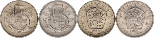 5 Kčs 1973, obě var. číslice 3 Novotný A + B 2 ks