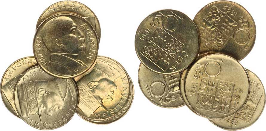10 Kčs 1991 - Štefaník (4x); +1992 - Rašín; +1993 - T.G.Masaryk 6 ks