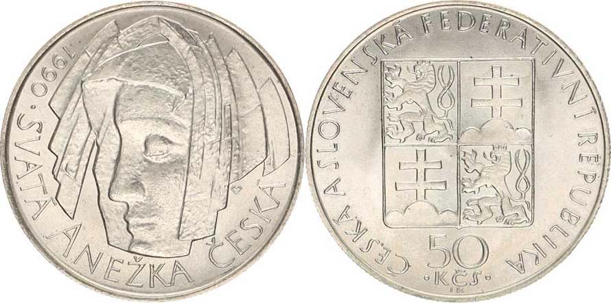 50 Kčs 1990 - sv. Anežka, se signaturou autora +certifikát a kapsle