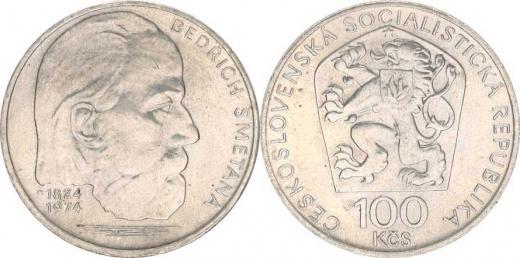 100 Kčs 1974 - Smetana, -nápis na hr. čitelný z Rv. (od znaku)