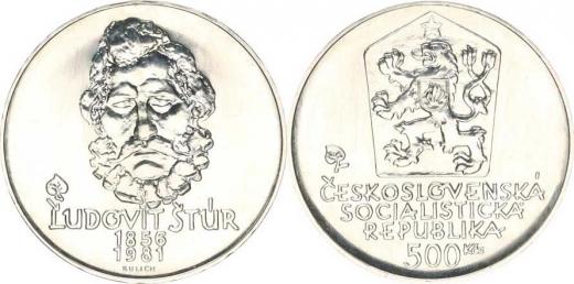 500 Kčs 1981 - Štúr Ľudovít, nápis na hr. čitelný z rubu (znak)