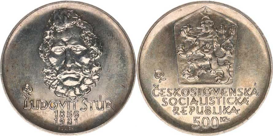 500 Kčs 1981 - Štúr Ľudovít, nápis na hr. čitelný z rubu (znak)