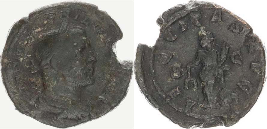 Sestercius, stoj.Aequitas zleva, drží váhy a roh hojnosti AEQVITAS AVGG - S C (značka SC uprostřed, běžně dole) RIC 166 18 g_hrana ražbou