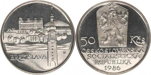 50 Kčs 1986 - Bratislava náhradní orig. balení ČNB _kruhová etue bez plomby