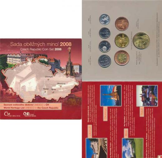 Ročníková sada mincí 2008 - UNESCO +žeton Litomyšl, Olomouc, Tře bíč, Brno (10 000 ks)