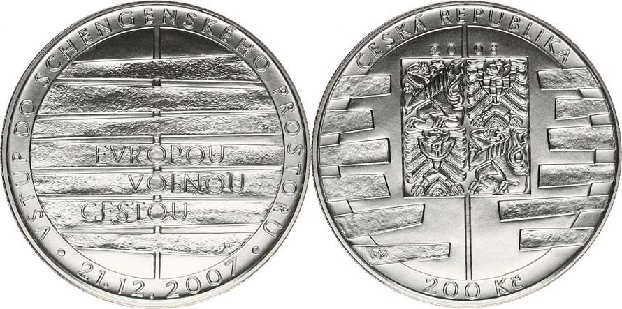 200 Kč 2008 - Vstup do schengenského prostoru (9 399 ks) kapsle +certifikát