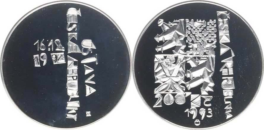 200 Kč 1993 - 1. výr. ústavy ČR kapsle, orig. etue