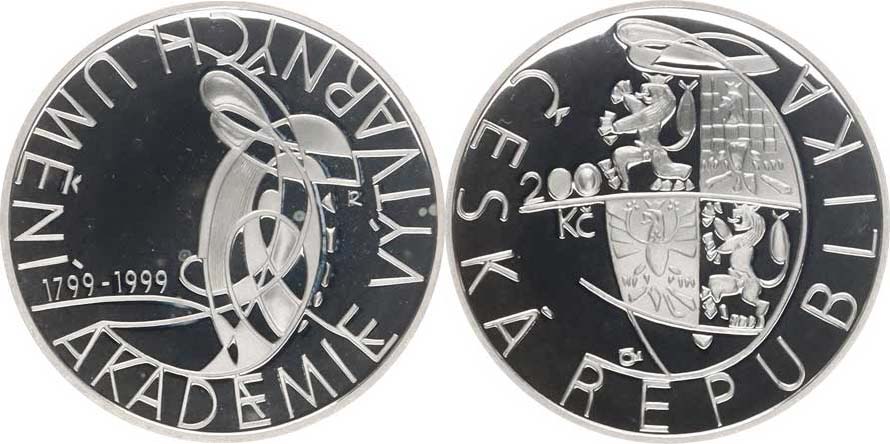 200 Kč 1999 - Akademie výtvarných umění kapsle, orig. etue