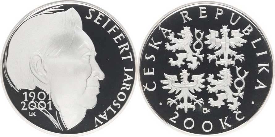 200 Kč 2001 - Seifert Jaroslav kapsle, orig. etue