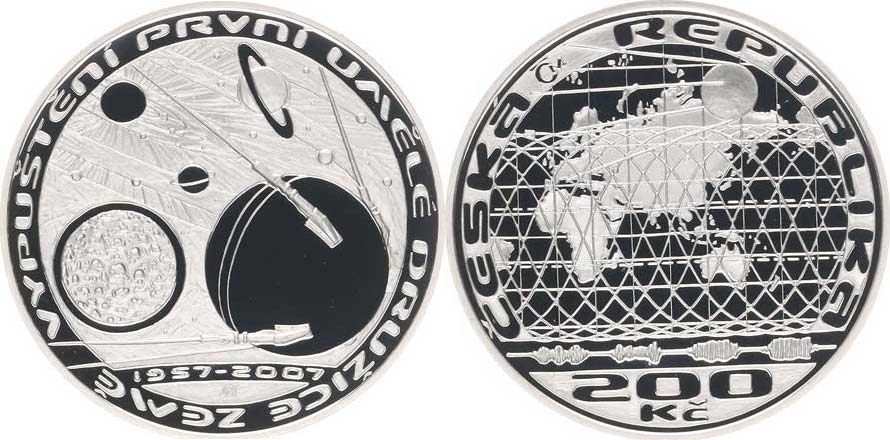 200 Kč 2007 - První umělá družice Země kapsle, orig. etu e