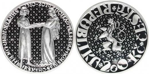 200 Kč 2010 - sňatek Jana Lucemb. s Eliškou Přemyslovnou orig.etue, kapsle +certifikát