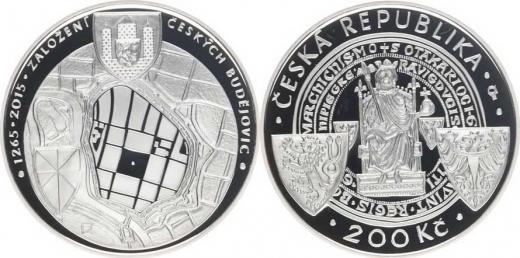 200 Kč 2015 - Založení Českých Budějovic kapsle, orig. etue
