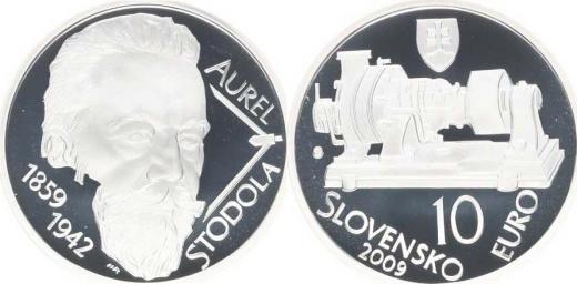 10 Euro 2009 - Aurel Stodola KM 108 kapsle, orig . etue +certifikát