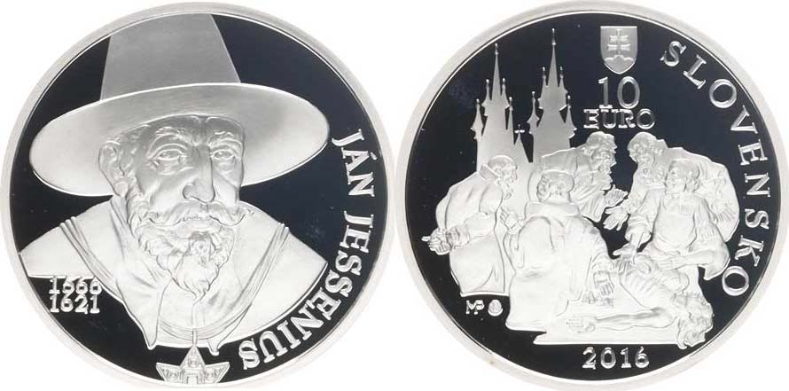 10 Euro 2016 - Ján Jessenius KM 144 kapsle, orig. etue +certifikát