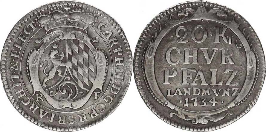 20 Kreuzer 1734 RF, LANDMVNZ KM 241 "R"