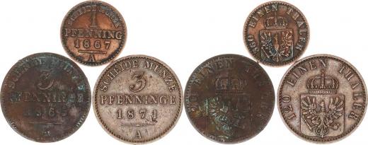 3 Pfennige 1865 A, 1871 A; +1 Pfennig 1867 A 3 ks