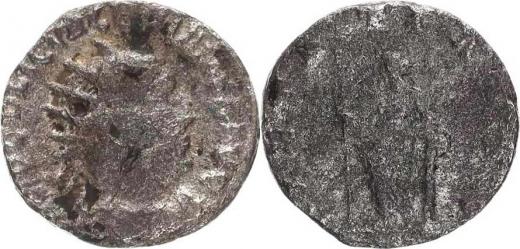 Antoninián, stoj.Pietas vlevo, opírá se o sloup a drží žezlo v pr avé ruce PIETATI AVGG RIC: 219; C: 155; Sear: 2789