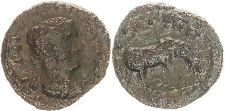 AE 23 koloniální bronz - Troas-Alexandria, A: Portrét vpravo, opi s / pasoucí se kůň zprava COL AVG - dole TRP SGI: 4445