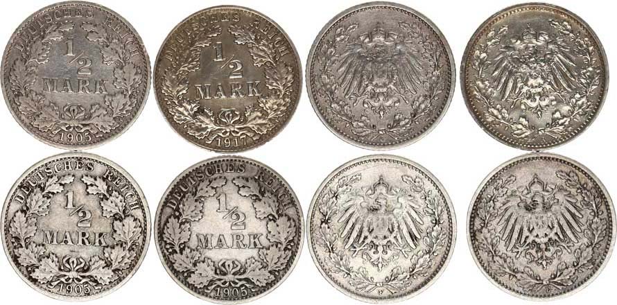 1/2 Mark 1905 E, F, G, 1917 A 4 ks