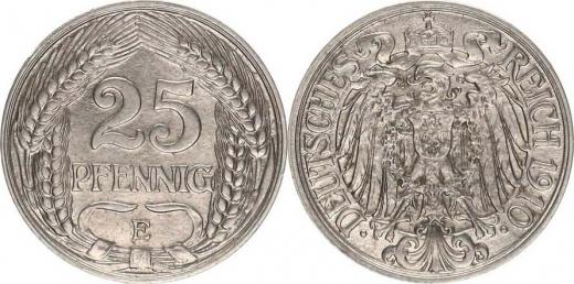 25 Pfennig 1910 E KM 18 "R"