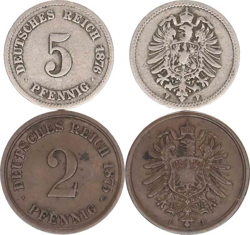 2 Pfennig 1875 D; +5 Pfennig 1876 F 2 ks