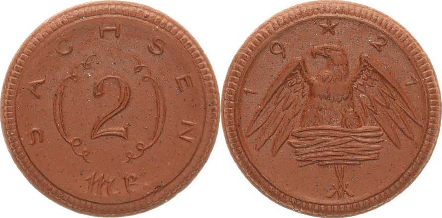 Sasko - 2 Mark 1921 míšeňský hnědý porcelán 27,5 mm 4,313 g Menzel 2018 / 27868