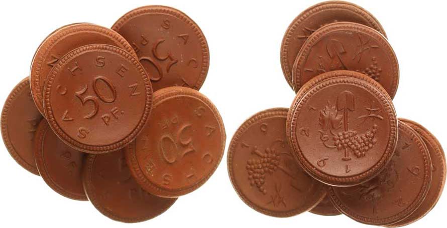 Sasko - 50 Pf. 1921 míšeňský hnědý porcelán 22 mm 1,9 g Menzel 2018 / 27868.9 8 ks