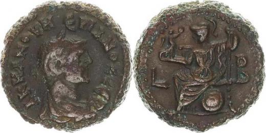 Egypt, Alexandria - AE Tetradrachma, rok 2, A: Portrét císaře vpr avo, opis / sedící Athena vlevo, drží v pravé ruce Niké, v levé žezlo, pod židli štt po stranách L - B Milne: 4699; SGI: 4782; S: 3348; BMC: 16.319.2464