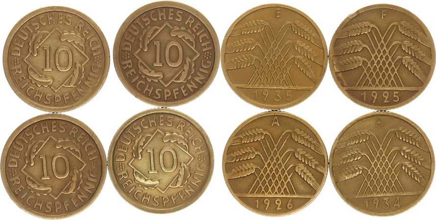 10 Rpf. 1925 F, 1926 A, 1934 A, 1935 E 4 ks