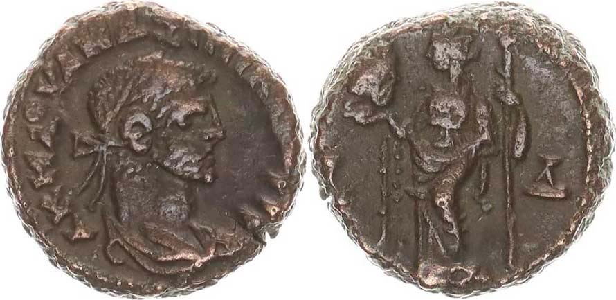 Egypt - AE Tetradrachma rok 4 (288/289), A: Poprsí císaře vpavo, opis / stoj. Alexabdrie s hlavou vlevo mezi písmeny L-D, v levé ruce žezlo, v pravé bustu Sarapise BMC 332.2593; Dattari: 5883 ; Milne480-4806