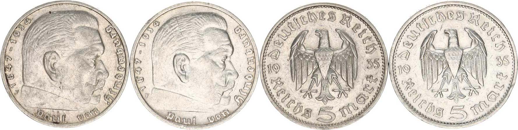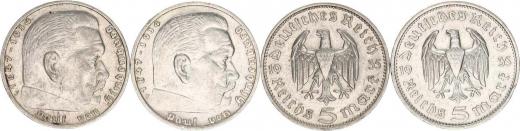 5 RM 1935 F, J - Hindenburg bez svastiky 2 ks