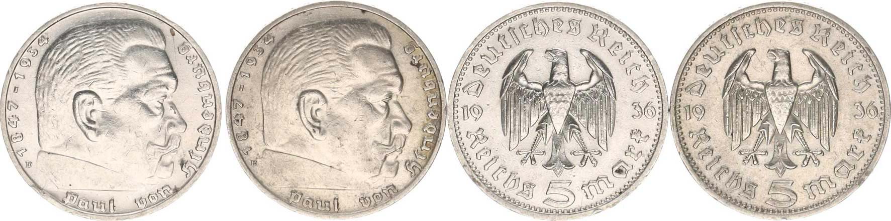 5 RM 1936 D - Hindenburg bez svastiky 2 ks