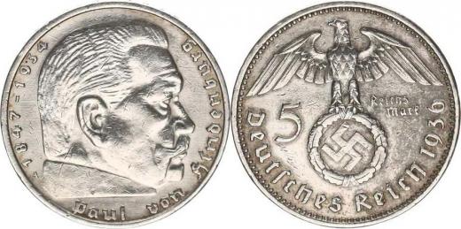 5 RM 1936 A - Hindenburg, svastika
